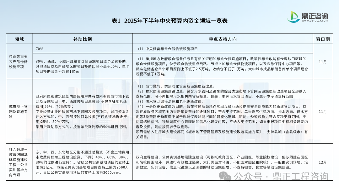 導(dǎo)讀:2025年下半年,中央預(yù)算內(nèi)資金與地方政府專項(xiàng)債券的申報(bào)通道進(jìn)入最后沖刺階段。國(guó)家資金投放的“黃金窗口”正在收窄,為搶抓政策機(jī)遇,我們結(jié)合最新政策文件,對(duì)申報(bào)領(lǐng)域、支持方向及申報(bào)要點(diǎn)進(jìn)行了全面梳理,助您搶占資金申報(bào)先機(jī),精準(zhǔn)對(duì)接國(guó)家資金,推動(dòng)項(xiàng)目落地開花!